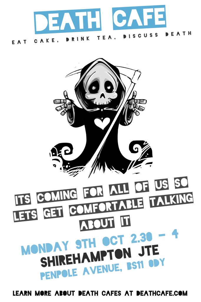 Death Cafe Posted on 6th Oct 2023 by shirejtehub Share this: Click to share on X (Opens in new window) X Click to share on Facebook (Opens in new window) Facebook Like Loading... Related
