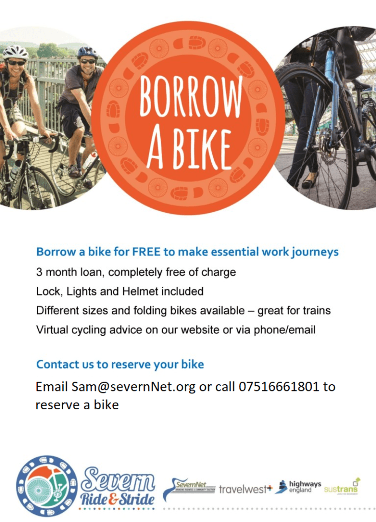 Severnnet have a fleet of bikes available to borrow for free for up to 3 months to make essential travel.